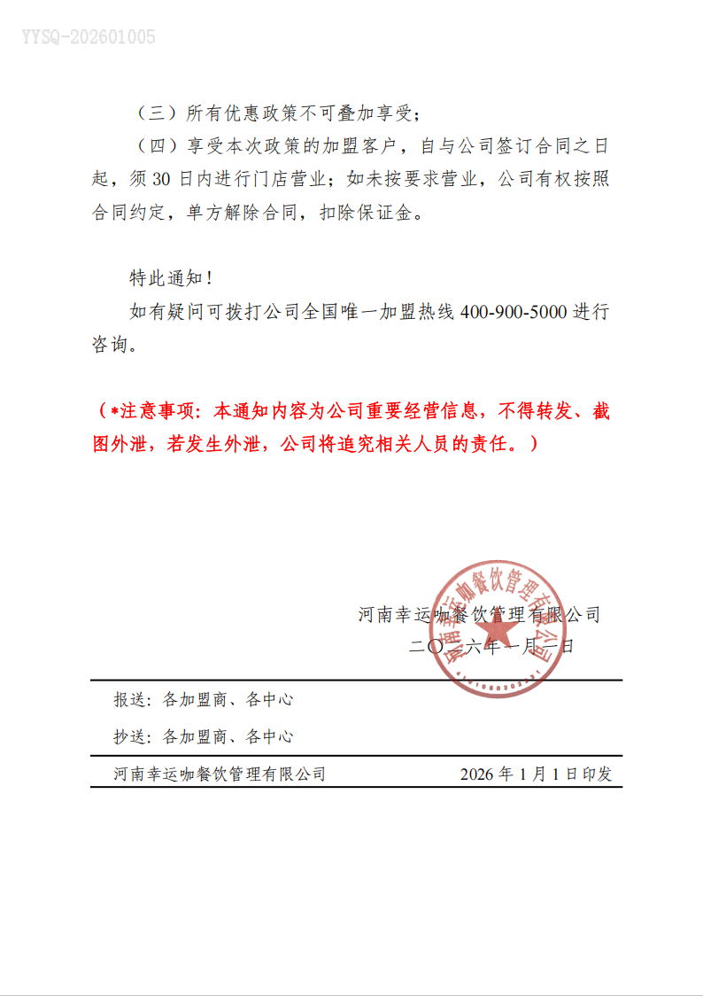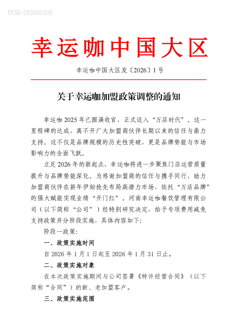 关于幸运咖加盟政策调整的通知